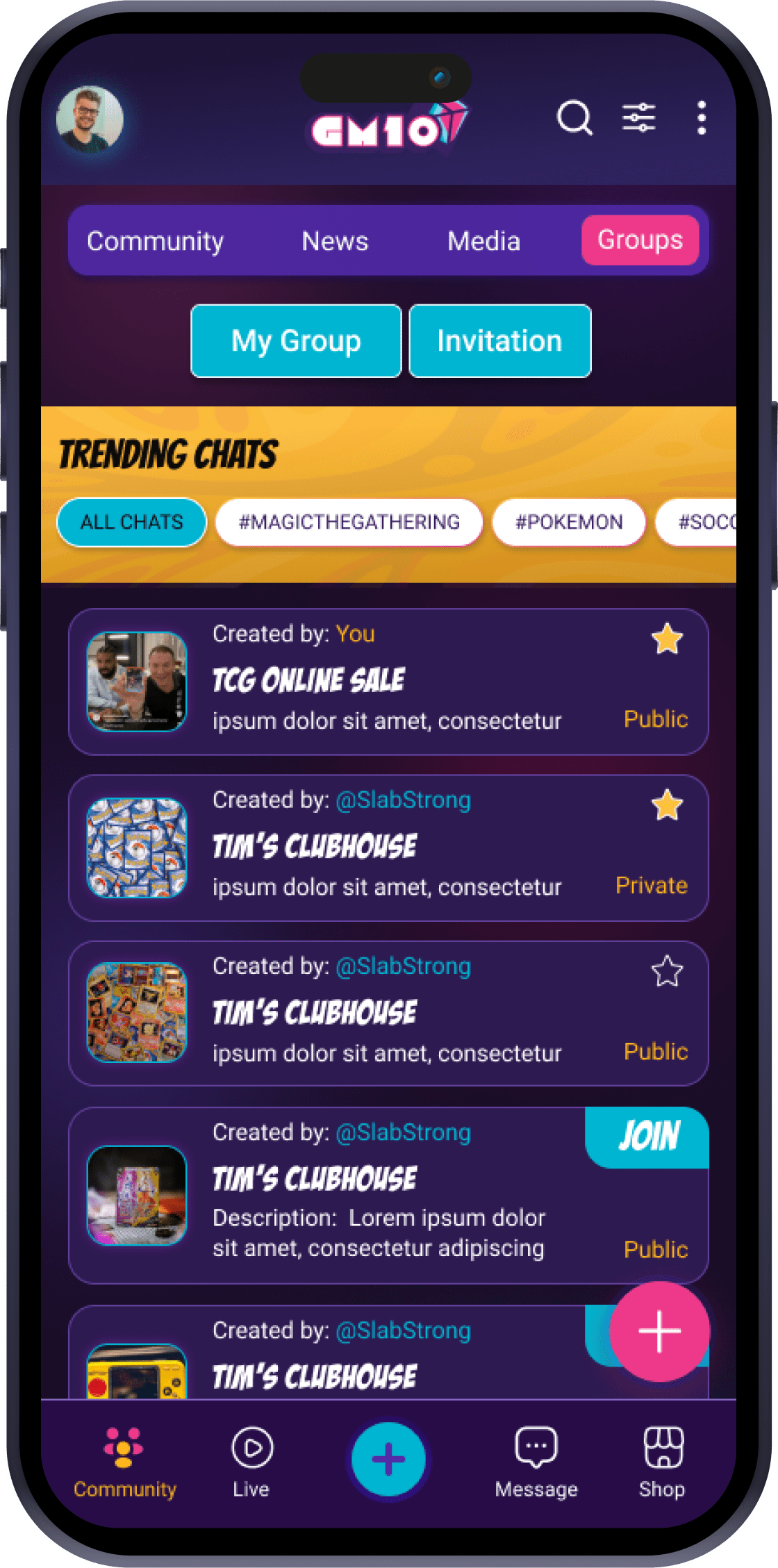 Social trading card platform developed to unite collectors, investors, and brands in one convenient place. It offers a secure, sleek marketplace for buying, selling, and grading cards, complete with live streaming auctions, randomizer breaks, and comprehensive pricing analytics. Users create personalized profiles to connect based on interests and collections, while Brand Shops empower creators to grow their business collaboratively. With a focus on safety, interaction, and nostalgia, app brings the trading card hobby into the digital age, making collecting more fun, secure, and profitable than ever before.